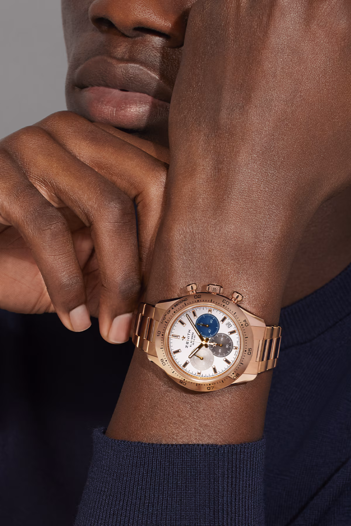 Este modelo representa la evolución del cronógrafo automático dentro de ZENITH, integrando más de cinco décadas de experiencia en el desarrollo del calibre El Primero. Su diseño retoma elementos icónicos como la esfera tricolor, reinterpretados en una estética contemporánea, mientras que su movimiento de alta frecuencia permite medir el tiempo con una precisión de décima de segundo. El resultado es una pieza que combina innovación técnica y carácter distintivo dentro de la relojería deportiva.