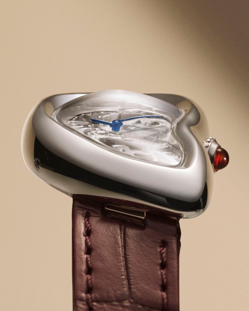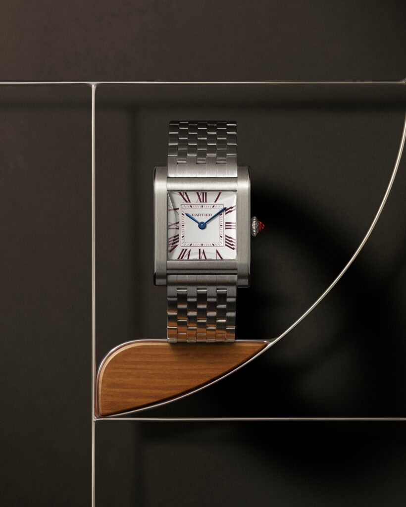 El uso del platino combinado con los acentos burdeos en las correas de aligátor y en la minutería de ferrocarril del Tortue y el Tank refuerza la identidad de esta colección como una celebración de la forma pura, convirtiendo a cada reloj en un objeto de culto que trasciende las tendencias temporales para convertirse en una pieza de historia viva.