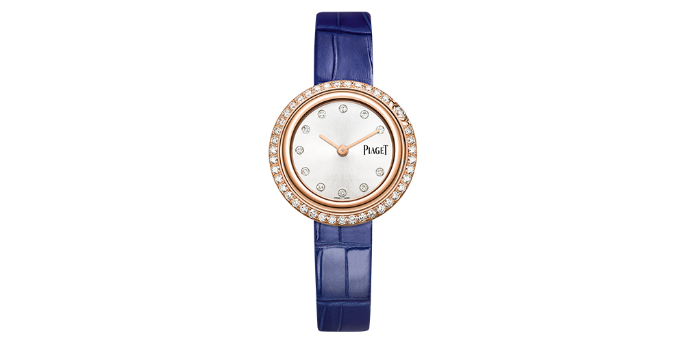 Piaget Polo Date High Jewelery watch, 36 mm. 18K white gold rhodium-plated case set with 80 brilliant-cut diamonds (approx. 1.22 ct). Diamond-pavé dial and rhodium-plated 18K white gold indexes, set with 352 brilliant-cut diamonds (approx. 1.21 ct). Crown set with 9 brilliant-cut diamonds (approx. 0.02 carat). interchangeable strap. Manufacture Piaget 500P1 automatic mechanical movement.
