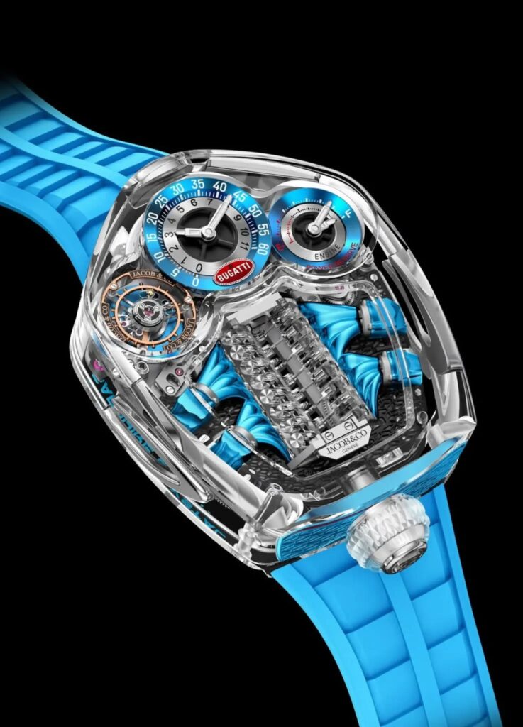 Esta serie inaugural se compone de dos piezas únicas que reflejan la exclusividad absoluta de la manufactura: una versión en el color verde característico de Jacob & Co. y otra en azul celeste. Con un precio de venta de 1,200,000 dólares, el Bugatti Tourbillon Sapphire Crystal es una pieza de diseño que permite una transparencia total que un automóvil real nunca podría ofrecer.