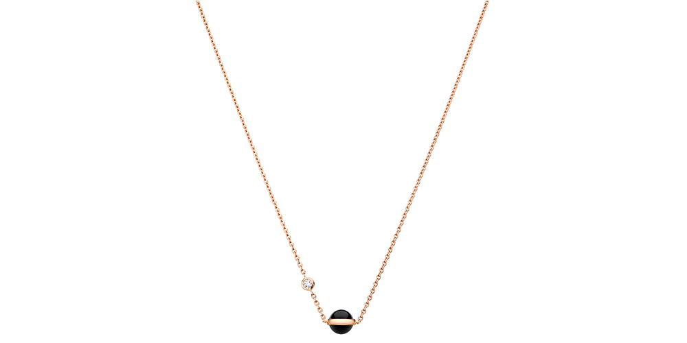 Amor a primera vista con el Colgante Possession de Piaget en oro rosado de 18 quilates engastado con un diamante talla brillante (aprox. 0,02 quilates) y dos cabujones de ónix negro.